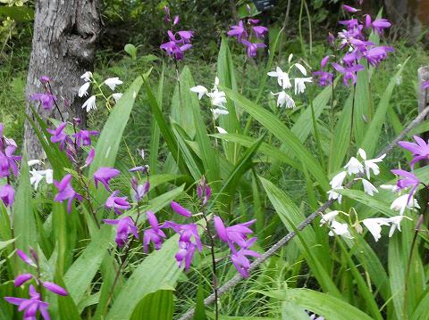 まれに白い花もあり、白花シランとよばれる。