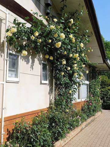 白藤、きばな藤、八重藤とバラ、しゃくなげなどを