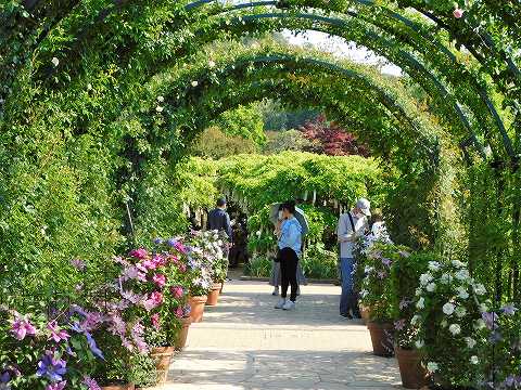 アーチ下の鉢植えクレマチス