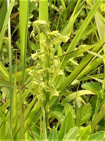 サギソウのような清楚な白い花ではなく薄緑色の花です。