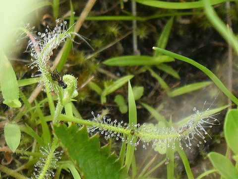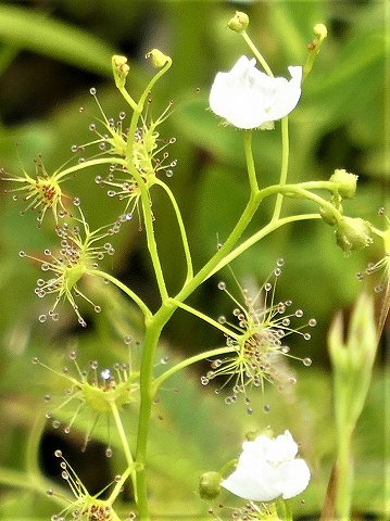 粘液を出し捕虫します。花は白色で直径1cm。イシモチソウとの