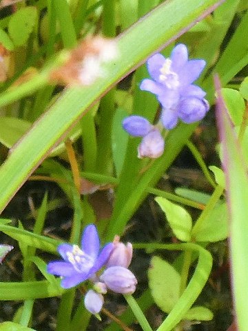 まばらに花をつけ、色は淡紫色で上向きに咲きます。