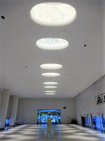 白い天井には、8つの明り取り窓があります。↓