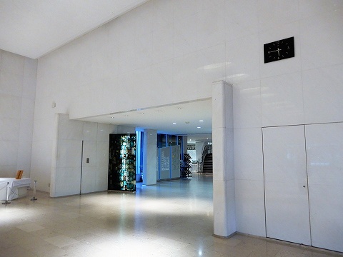 エントラスホール奥のガラスブロックの袖壁↓