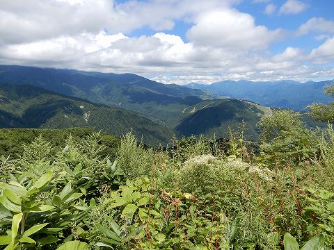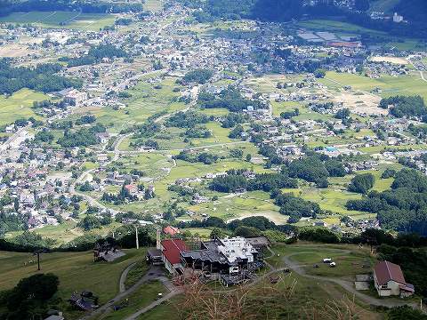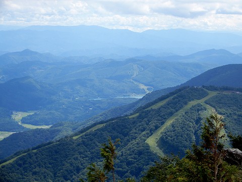 手前の山の後ろ、写真中央に青木湖が見えます。