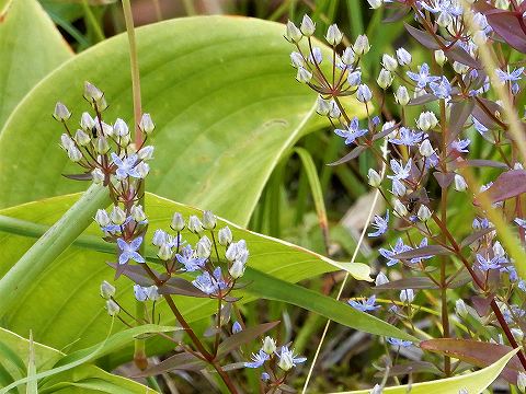 | 薄紫色で濃い紫色の斑点があり、4裂した7~10mmほどの可愛らしい花。葉の大きさは2~3cmで柄が無く、背丈が10~40cm。 |