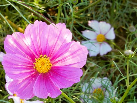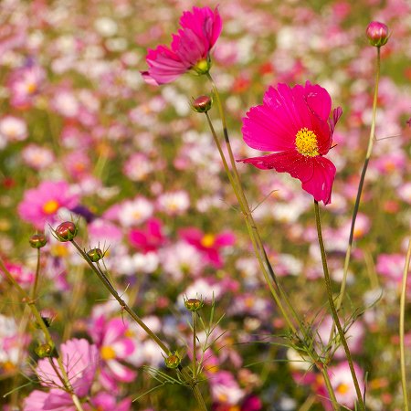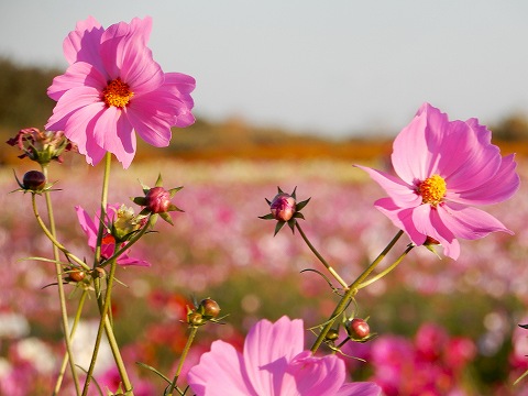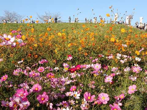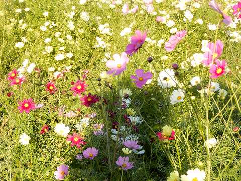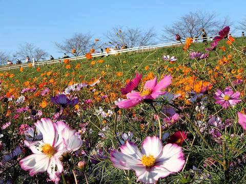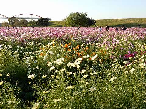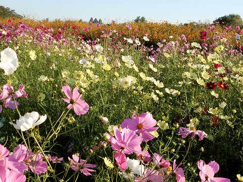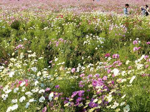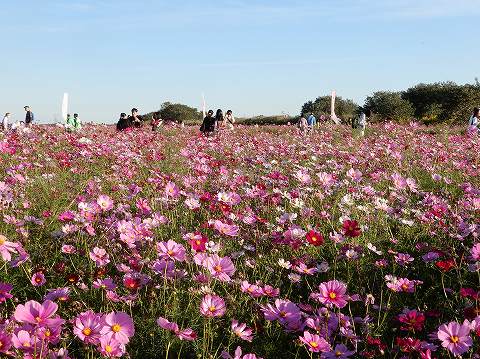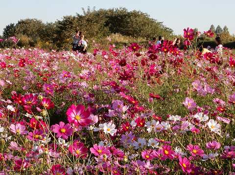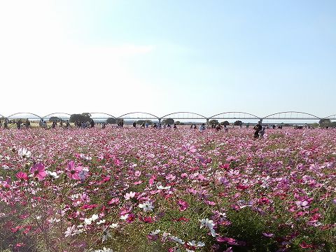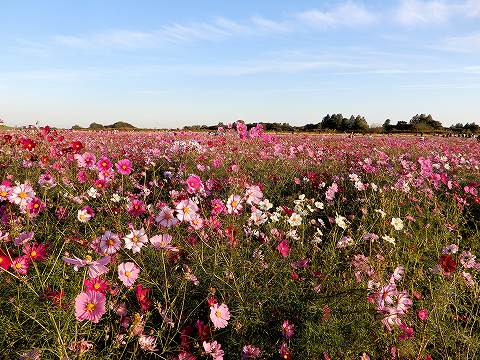 桶川加納ICから15分で着くはずが、大渋滞で2時間20分かかりました。 何度か ”目的地変更” が頭をよぎりましたが、こんなにも広大な規模の コスモス畑は見たことがなく、諦めなくてよかったと思いました。 ちなみに、コスモス畑の滞在時間は、1時間20分でした。