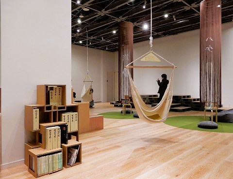 デザイン監修は世界的建築家の隈研吾氏。マンガ・ラノベ図書館、ロックミュージアムショップ、角カフェ、EJアニメミュージアム、そして大迫力の本棚劇場が訪れた者を迎えてくれます。 |