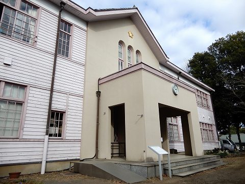 | 大正10年(1921)に完成した町役場。大正デモクラシーの息吹を感じさせる洋風建築ですが、裏には和風建築が附属しています。 |