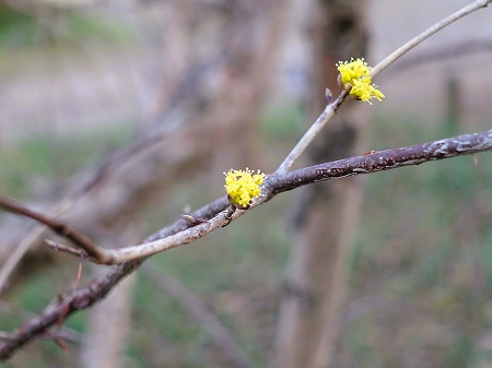 | ミズキ科ミズキ属の落葉小高木。中国原産で、春先にはが出る前に黄色い花を咲かせ、秋に組みに似た赤い実をつけえる。別名でハルコガネバナ、アキサンゴ、ヤマグミとも呼ばれる。季語は春。庭園樹や公園樹として多く植栽されている。 -Wikipedia- |
