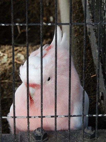 淡いピンク色がきれいな大型のオウムで、『世界一美しいオウム』