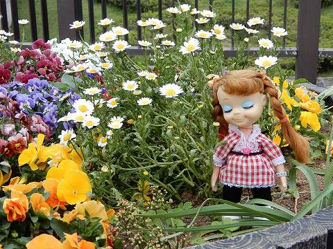 パンジーと今日のお供 ジョージーナです。