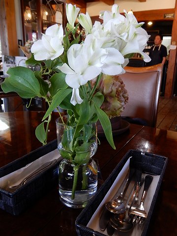 テーブルの白いお花と カトラリー
