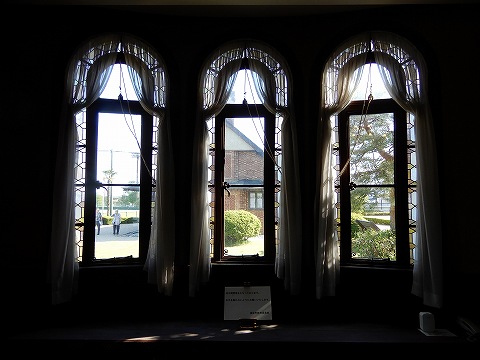 | 化粧の間や大広間の窓のステンドグラスは目を引きます。 |