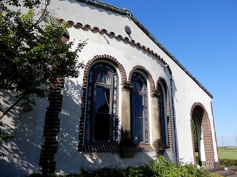 当時の多摩川電車の終点であった第一銀行付属運動場に建設された。イギリスの農家風の落ち着いた雰囲気と輪郭をもち、住宅ではないが大正前半期の住宅建築へかけた建築家の夢の実現とでもいうべき密度の高い仕事である。細部によく神経が行き届き、森谷延雄のデザインしたステンドグラスや煉瓦の肌合いなどに設計者の装飾に対する造詣の深さがしのばれる。 |