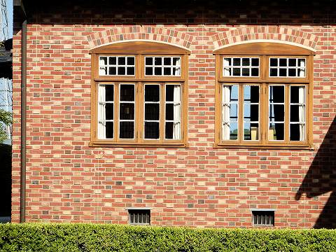 | 北側外部壁面には、煉瓦による朝鮮風の装飾積みで「喜寿」の文字を表しています。 |