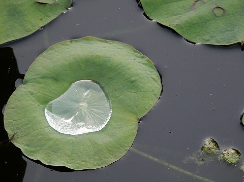 ハスの葉に溜まった水