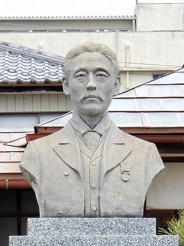 ここに立つのは秩父鉄道の創業者で初代社長 柿原万蔵翁(1860-1919)の銅像です。