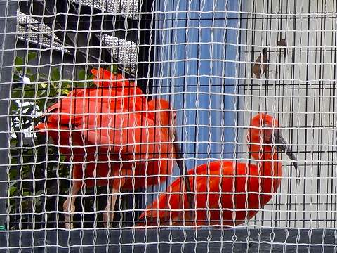 地上から近づく捕食者から巣を守るため、湿地の島や樹上に営巣します。羽毛の緋色はエサに含まれるカロテンに由来し、カロテンが含まれないエサを食べているとだんだんと色が薄くなっていきます。 |