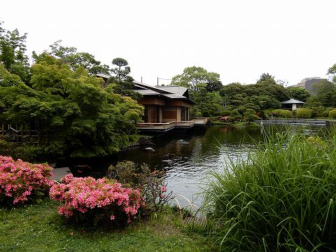 池の畔には源心庵・林泉亭・つつじ亭があります。