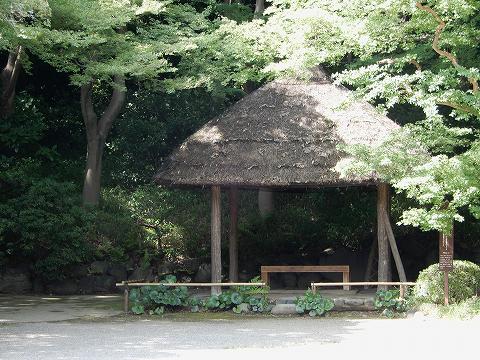 茅葺で栗の木の柱を使い、田舎の侘びた茶屋の佇まいを表している。「丸」の字を染め抜いた暖簾を下げていた。