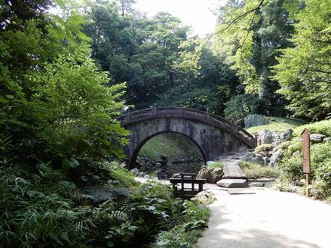 石造りアーチ橋として園内最古のうちの一つ。 |