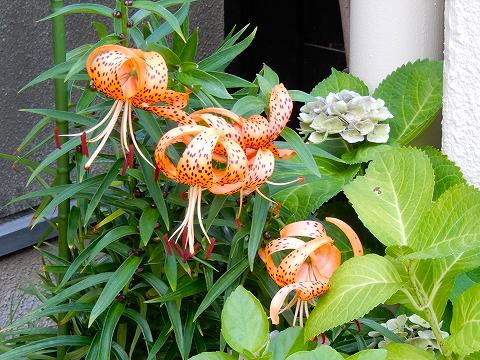 オニユリとアジサイ