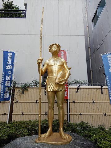 この故事に鑑み、合羽橋道具街の誕生90年を迎えるにあたり、ご来街のお客様ともども幾久しい商売繁盛を祈念し、台東区の協力を戴きこの地に「かっぱ河太郎像」を建立する。 |