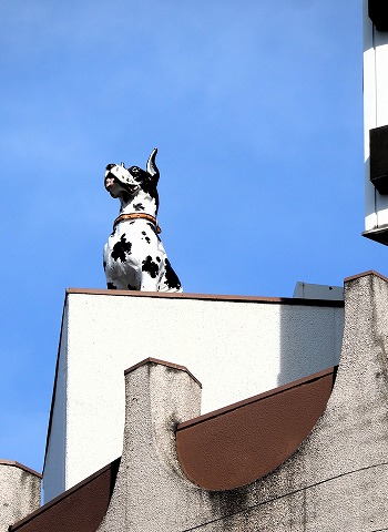 ビルの屋上の犬の巨大オブジェ