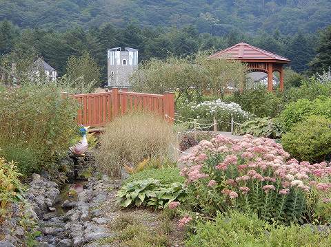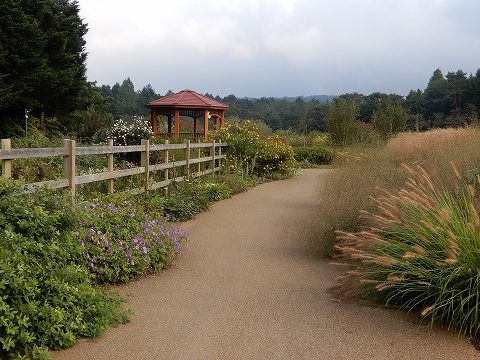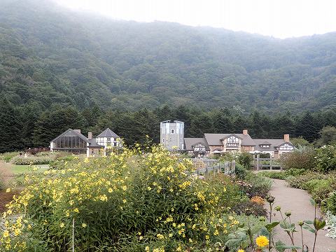 | イングリッシュガーデンの柵の向こうに ショップ&ギャラリーが見えます。時間があったら、寄りたいです。 |