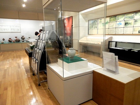 | 縄文時代の土器や土偶をはじめ、埼玉県指定文化財の白磁四耳壷などの出土品が展示されています。 |