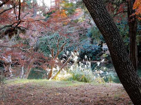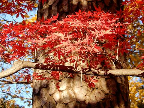 駐車場から紅葉を求め、広い公園の東エリアと南エリアを廻りました。