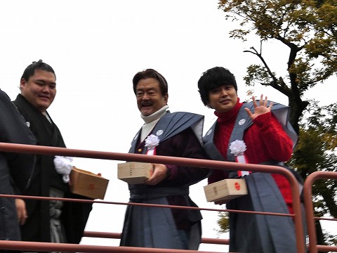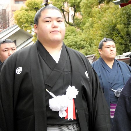 王鵬関と、大和田伸也さん、大和田健介さん親子