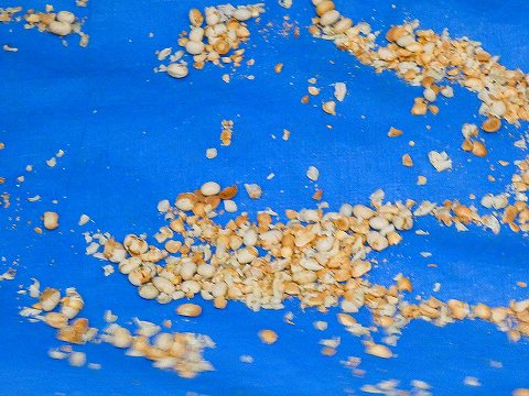 足元に落ちた豆