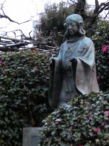 台座に道真公5才の時庭前の紅梅を詠まれた和歌が刻まれています。 |