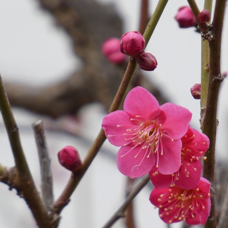 紅梅性のやや遅咲きの品種で、紅梅の代表格です。