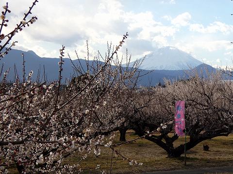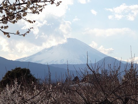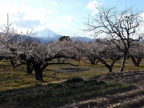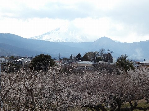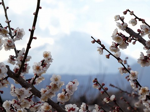 富士山を背景に梅の花を眺める絶景スポットとして人気の高い