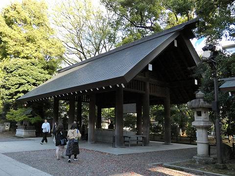 この手水舎は昭和15年、在米日本人兵役義務者会より奉納されました。花崗岩で作られ、重さは18 t あります。