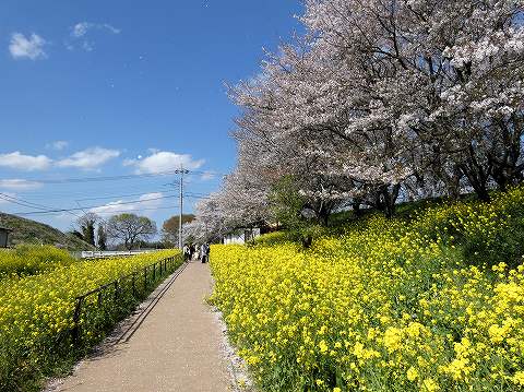 どこまでも続く桜と菜の花の遊歩道