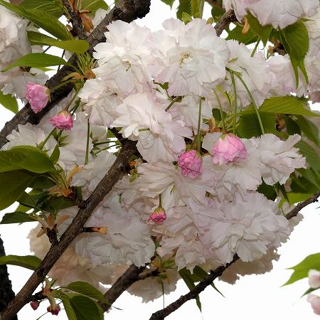 | こちらもカンザンと同じく、東京府江北村(現・足立区)の荒川堤で栽培されていた品種です。八重桜の中では特に優美な品種です。 |