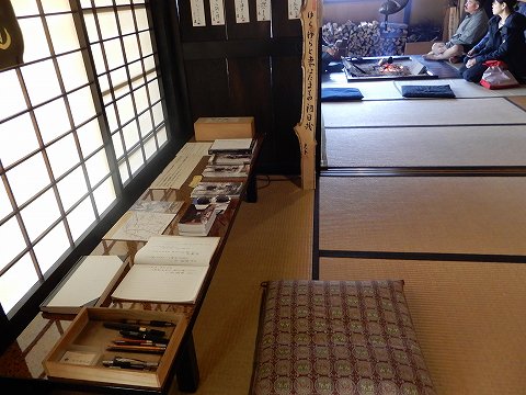 手前の部屋は芳名帳記帳、俳句記帳の机