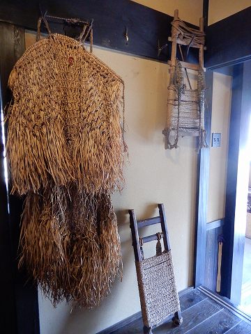 出入り口付近の廊下の簔と背負子