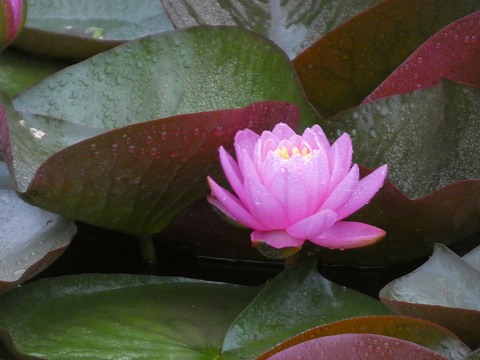 池に浮かぶ睡蓮とアサザ