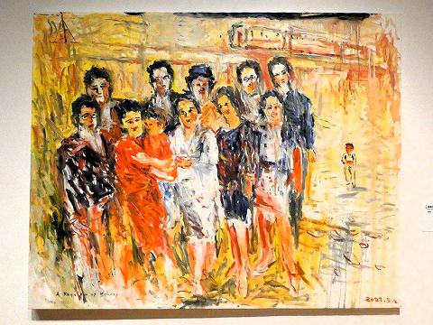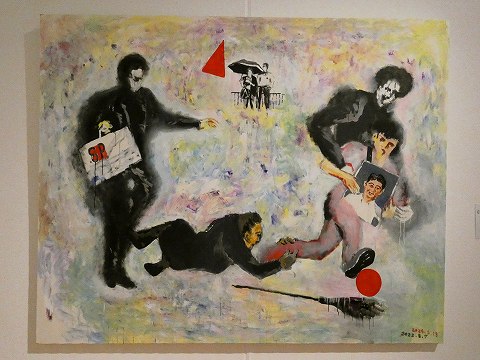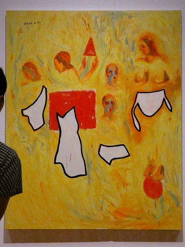 2023年春、からだの衰えに淡々と応じつつ、テーマも決めずに大きなキャンパスに向かううち、横尾の「連歌」ならぬ「連画」制作が始まりました。和歌の上の句と下の句を複数人で分担して詠みあうのが連歌ですが、横尾は昨日の自作を他人の絵のように眺め、そこから今日の筆が導かれるままに描き、明日の自分=新たな他者に託して、思いもよらぬ世界がひらけるのを楽しんでいました。