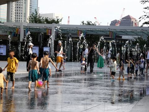 改札を出てすぐの水遊びエリアでは