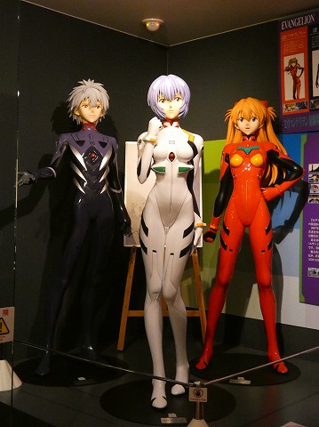 渚カヲル、綾波レイ、惣流・アスカ・ラングレーの等身大フィギュア