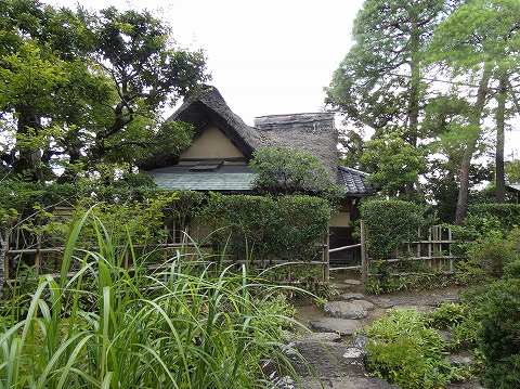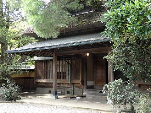 | 東棟は、茅葺き屋根の豪農風建築です。元一の生まれた旧宅の再興を象徴しています。また式台や控えの間など武家風の要素を加味しているのが特徴です。 |