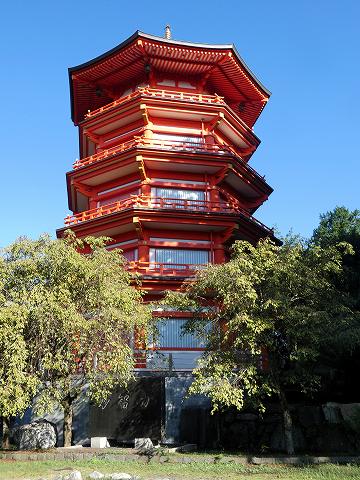 この五重塔は、中国・西安の「大雁塔」を模して設計されており、通常の日本の五重塔とは異なる八角形の構造をとっています。設計・施工に関しては、寺院が中心となって進めたもので、特定の個人名は公表されていませんが、仏教建築に精通した職人たちによって丁寧に造られました。