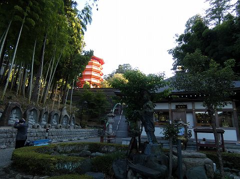 最初に見学した本堂など主要な建物は、崖を背景にしており、斜面から崖上にかけてにも、様々な施設が配置されています。 崖上に見える朱色の五重塔を見学するため急坂の道を徒歩で登坂しますが、とにかく急で息が切れました。