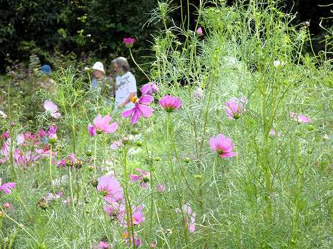老若男女が連れ立って、名残惜しげに草花を愛でています。 |